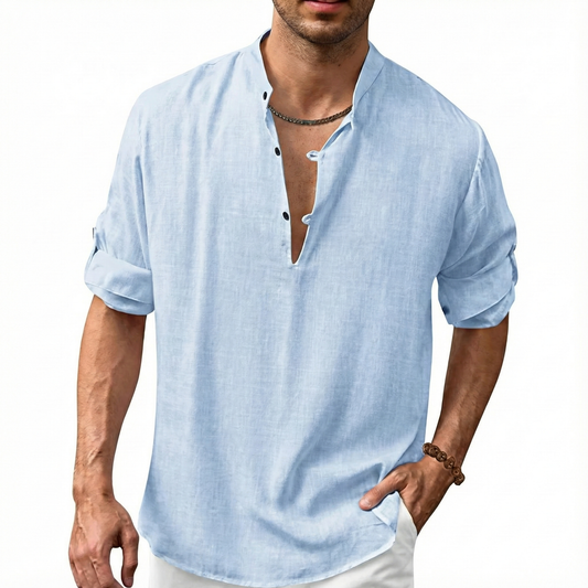 Men’s Linen Cotton Blend Casual Button Down Shirt – Lightweight Summer Beachwear, Long Sleeve, Relaxed Fit – Sizes S–3XL