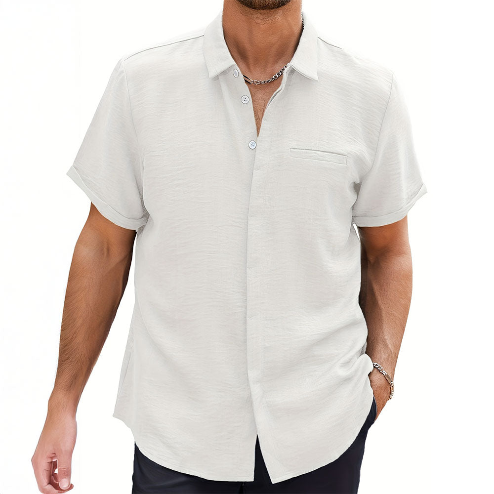 Hand-Cut from lightweight, breathable fabric blend, this shirt delivers a relaxed yet refined look. Rolled sleeves and a subtle chest pocket add casual charm, ideal for summer outings. Its airy drape and open collar keep things effortlessly cool.