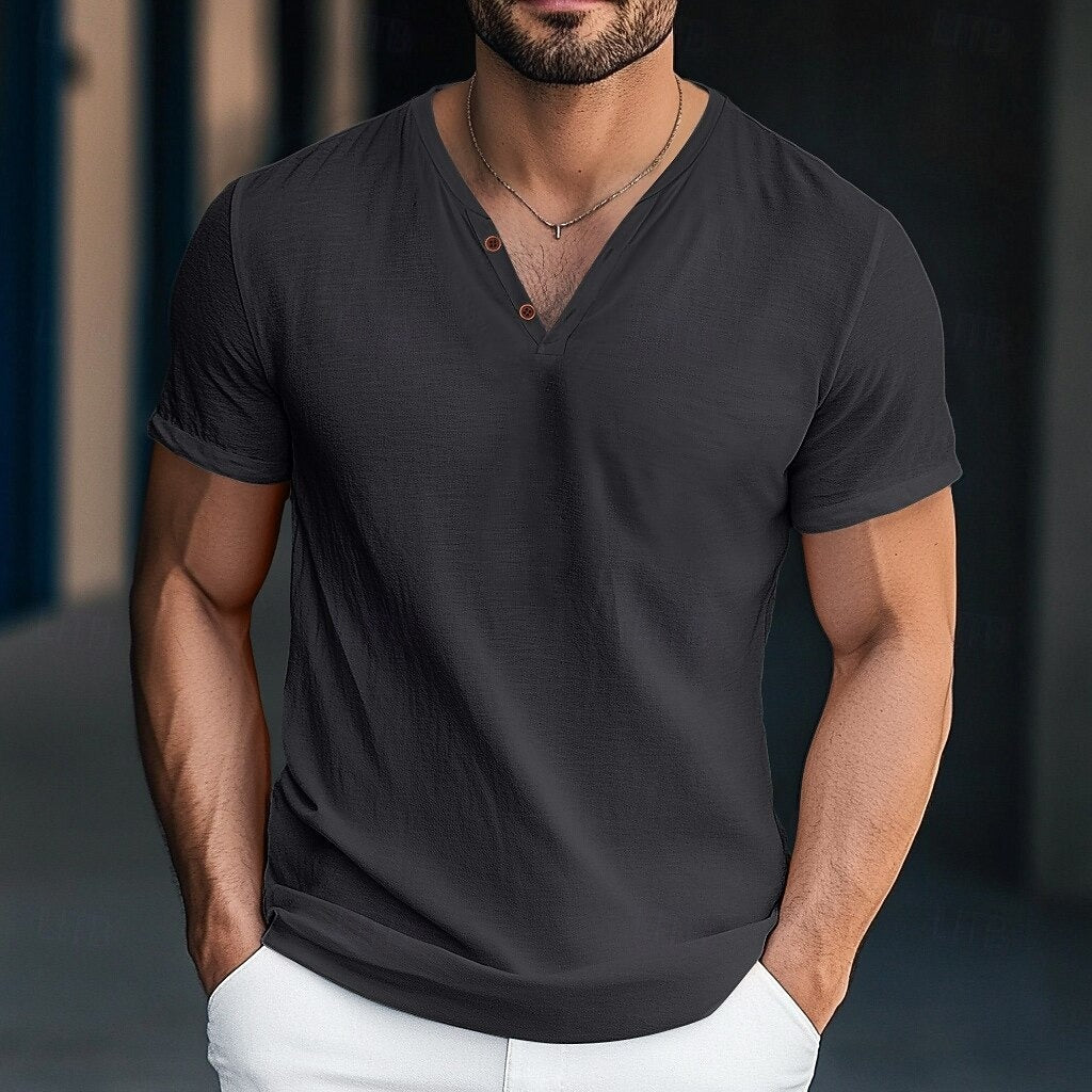 Crafted with effortless style in mind, this Henley shirt features a handsome neck design and a precision-tailored fit. Its vibrant yet elegant hues make it a versatile piece, equally perfect for casual layering or standout solo wear.