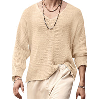 Lightweight and long-sleeved, this knit shirt boasts a relaxed fit and a deep V-neckline for effortless style. Made from breathable fabric, it offers all-day comfort with a refined, casual edge. The neutral tone enhances versatility, making it perfect for both laid-back outings and relaxed evenings.