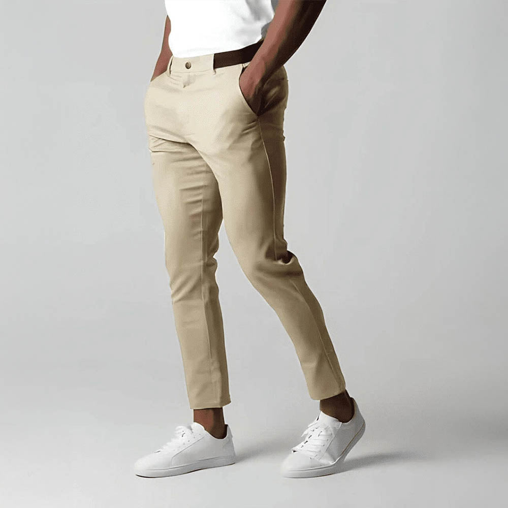 Effortlessly sharp, endlessly versatile, these slim-fit trousers are crafted to elevate everyday dressing with a crisp edge. Designed for clean lines and all-day ease