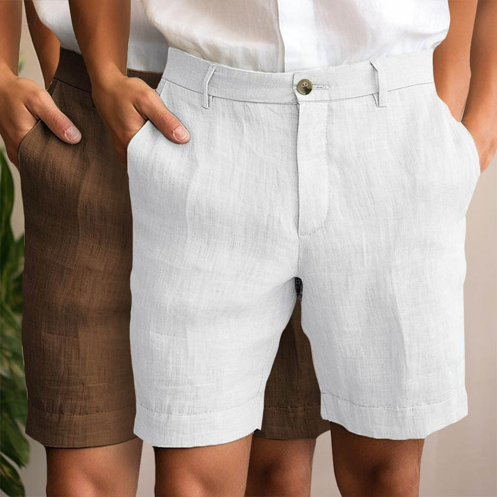 Experience unparalleled comfort in these fashionably formed shorts, delicately designed with an exceptionally soft cotton-linen fabric for an ideal accessory to summertime attire.