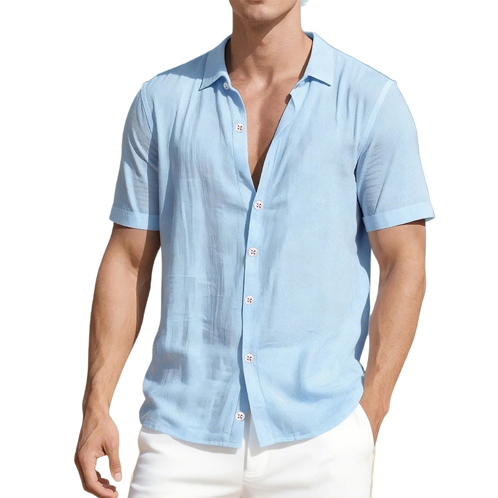Hand cut for refined summer dressing, this premium linen-blend shirt delivers an ultra-light, breathable feel with a smooth, tailored drape. The fabric flows effortlessly, creating a sharp yet relaxed silhouette that stays comfortable all day. Designed to elevate warm-weather looks, it blends laid-back ease with a distinctly polished finish.